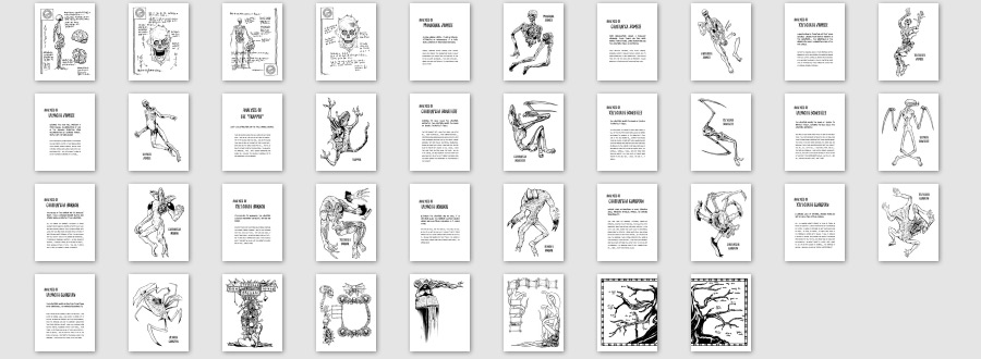 Here are the pages I made for my Book of Eternal Darkness replica prop from the Gamecube game Eternal Darkness. All illustrations are my re-tracing of screenshots taken directly from the game.