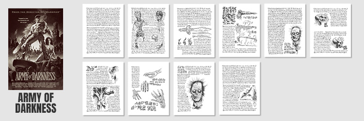 Here are the revised black and white pages I made for my Evil Dead 1981 Necronomicon replica. All illustrations are my re-tracing of screenshots taken from the movie.
